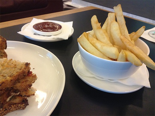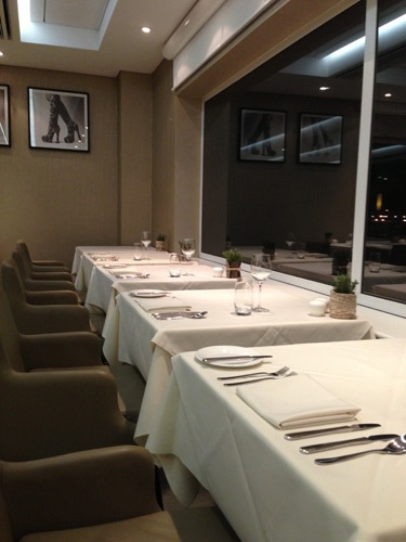 I had decided to attempt slumber on QF2 and that meant avoiding eating early on. I decided to finally try the BA F Lounge restaurant. It is an odd little room with tables arranged against the windows and set for one person. I suspect many here would love the the views over, what I am reliably informed, is the the apron. (It's all beyond me.) It is a bit posher than the QF SYD or MEL F lounges, but not as nice...if that makes sense. I fitted in much as a duck enjoys life without water. It was relatively empty but reeked of pretentiousness, which made me wonder why I was not thoroughly enjoying it. I have had tens of opportunities to "enjoy" the F dining but have never felt like I wanted too. I typically enjoy the BA burger in the main lounge, and the wine is no different, tonight I made the decision to eat early rather than in-flight....although I suspect this means I'll eat twice.