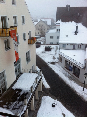 Southern Germany in snowy winter is like a scene from a Christmas Card, what I don’t understand is why there is not complete and utter carnage on the roads. I think I came close to death twice on the 170 KM journey north from Munich. Icy and wet roads and 155KM/H left me with cramp in my right hand from gripping rather too tightly on the door. I would like to tell you about the beautiful scenery but my eyes were closed most of the time.